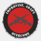Ein Aufkleber mit dem Sprichwort "Improvise, Adapt, Overcome" und zwei M16s