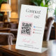 Entworfen mit einer modernen, minimalistischen Ästhetik, zeigt dieses Podest-Schild einen scannbaren QR-Code, der direkt zu Ihren Social-Media-Profilen, Ihrer Website oder Ihrer Kontaktseite führt.