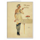 Die Vintage Pinup-Kunst von Raphael Kirchner zeigt eine entmutigte junge Frau in schieren Nächten oder Schlüpfen, Schlafmütze und schwarzen Strümpfen mit Frucht in beiden Händen und am Tisch neben ihr.