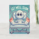Ein Cartoon von einer Person, die mit Verbänden bedeckt ist, sodass man ihre Augen und Zehen nur in Traktion auf einem Krankenhausbett sehen kann, mit der Meldung "Get Well bald" oben. Im Inneren gibt es eine Massage, die man sich ändern kann.