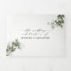 Un design élégant et minimaliste avec des illustrations d'eucalyptus et de branches vertes sur chaque panneau. Tout cela dans une seule invitation vous économiserait de l'argent, pas besoin d'inclure des enveloppes RSVP, vos invités découperont le dernier panneau et vous le renvoyer comme carte postale.