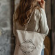 Ce sac fourre-tout rustique de style mignon, avec des éléments de design de verdure dessinés et le nom de la demoiselle d'honneur sera parfait pour mariage merci cadeaux ou faveurs.