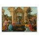 Die Verehrung des Magis durch Sandro Botticelli, c. 1478-1482, ist ein Temperamalerei auf Holz, das die Weisen und die Aussichtspersonen um die Heilige Familie bei der Geburt Christi in einem Manger in Bethlehem darstellt. Set inmitten römischer Ruinen in einer coolen, italienischen Landschaft, verschmelzen die linearen Perspektivenlinien der architektonischen Elemente und führen das Auge zum verschwundenen Punkt im Zentrum der Komposition. Botticelli zeigt seine Meisterschaft in der Platzierung von Figuren und Formen im Perspektivraum, einer führenden Innovation der frühen Renaissance-Maler. Die individuellen Merkmale und Varianten von Pose, Kostüm und Farbe der Figuren zeigen die Verschmelzung von Christlicher Religion mit klassischer Kunst, Naturwissenschaft und Antiquitätenphilosophie, die das Kennzeichen der HochRenaissancekultur ist. Sandro Botticelli (1445-1510) war ein florentinischer Maler der frühen italienischen Renaissance, der unter dem Meister Filippo Lippi lehrte. Das ausgefeilte Werk von Botticelli spiegelt mit starken gotischen Einflüssen eine Studie der antiken klassischen Skulptur wider und wurde für seine lineare Gnade und seinen Rhythmus, seine flachen Reliefformen mit starken Konturen und seine subtile Färbung bekannt. Die Komplexität der Bedeutungen in Botticellis Kompositionen, aus Quellen, die aus der klassischen Antike, Mythologie und Philosophie gezeichnet wurden, begeisterte Gelehrte seit Jahrhunderten.