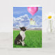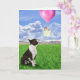 ein Boston-Terrier, der ein Kätzchen aufpasst, weg in einen Ballon in der Landseite zu schwimmen