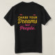 Dieser lebendige T - Shirt zeichnet sich durch ein gewagtes, abstraktes Design aus, das die inspirierend Botschaft "Jage Deine Träume, Not People" enthält. Der Text wird in einem mehrfarbigen Schriftart geschrieben, wodurch eine visuell auffällige und aufhebende Aussage erstellt wird. Das Design ermutigt den Einzelnen, seine Leidenschaften und Ambitionen zu verfolgen, anstatt sich auf die Jagd nach anderen zu konzentrieren.