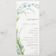 Hochzeitsprogramm mit einem eleganten Blumenstrauß in zartem Blau, vergiss-nicht-Blume mit hellgrünen Blätter und gewölbten Stielen, natürlichen Frühlings- oder Sommerpastellfarben, einem romantischen, hellen Bouquet Wildblumen. Botanische digitale Wasserfarbe. Niedliche Blume Botany Wedding Programm. Vergessen-Me-Not Collection