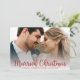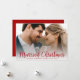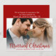 Diese fabelhafte 1. Weihnachtsankündigungskarte mit "Verheirateten Weihnachten!" in einem modernen Goldskript-Schriftart und Ihren Namen und Hochzeitsdatum in einem sauberen, klassischen Cap-Schriftart auf der Vorderseite und eine vollständig anpassbare Hochzeitsankündigung und Urlaubswunsch auf der Rückseite in einem passenden Rot mit weißem Schriftart ist perfekt für alle Ihre Familie und Freunde. Jeder wird Liebe bekommen ein Foto von Ihnen an Ihrem großen Tag! Um diese Karte zu Ihrem eigenen zu machen, wählen Sie einfach Personalisieren Sie diese Vorlage, laden Sie ein Lieblings-Hochzeit-Foto, und geben Sie Ihre Namen, Hochzeitstag/Ort und Urlaubswünsche ein. So einfach ist es!
