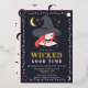 Wicked Witch Black Cat Halloween Party Invitation présente une sorcière et son chat avec un vrai papier d'aluminium. Idéal pour la fête maison ou les filles soirée Halloween parti.