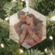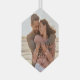 Verlobte & helle Weihnachtsschmuck mit Foto der Verlobung und die Möglichkeit das Jahr inbegriffen. Einfach, minimalistisch und effektiv mit Vintag nostalgischer Typografie und einem kompletten Foto des verlobten Paares.