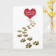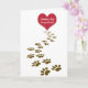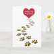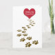 Rotes Herz und braune Pfotendrucke auf Weiß für das Beileid von Haustieren. Alle Texte können bearbeitet werden.