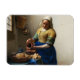 Johannes Vermeer der Magnet der Milchmädchen. Ölmalerei auf Leinwand um 1660. Vermeers The Milkmaid, eine schöne Darstellung einer niederländischen Küche, erobert das nordeuropäische Mittelklasse-Leben mit Anmut und Meisterschaft. Die Milchmädchen gießen Milch aus einem Glas in einen größeren Topf, umgeben von verschiedenen Laiben mit frischem Brot, einer blauen Drape und einem Korb. Die Frau trägt selbst ein weißes Kopftuch, einen gelben Körper und einen blauen und roten Rock mit grünen Ärmeln. Ein großartiges Geschenk für Liebhaber von Johannes Vermeer, Barockmalerei und niederländischer Kunst.