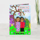 Denken Sie an Sie und vermisst Sie Karte für einen Freund. Weiße Hand gezeichnete Kunst Folk Stil whimsical Blume, Baum und Freunde.