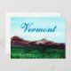 Vermont Staat Farben mit grüner und blauer Schrift auf der Landschaft Szene, die zeigt, was man im Staat von Vermont mit Bergen und grünen Wiesen sehen konnte.