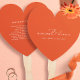 Behalt deinen Gästen cool und informiert mit diesem modernen Verona Sunset orange Hochzeitsprogramm Fan. Dieses elegante, herzförmige Gebaeude ist perfekt für Hochzeiten im Freien, Sommer und Garten geeignet. Freuen Sie sich auf ein elegantes minimalistisches Design mit anmutiger Kalligraphie und leicht lesbarer Typografie. Die orangefarbene, warme Untergrundfarbe verleiht dem Hotel eine kühne und dennoch elegante Touch, die sich ideal für moderne, elegante und rustikale Hochzeitsthemen eignet. Dieser Handfächer ist vollständig anpassbar und ermöglicht es Ihnen, Ihre Einzelheiten zur Hochzeitsfeier, die Reihenfolge des Dienstes oder besondere Danksagungen im Stil anzuzeigen. Eine schöne und funktionelle Ergänzung zu jeder Hochzeitsfeier.