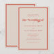Célébrez votre histoire d'amour avec nos Invitations de Mariage de Verona Peach Colorful Moderne, élégamment conçu dans les tons pêche et rouge orangé de verona. Ces invitations époustouflantes capturent l'essence de la romance, avec un texte rétro audacieux que vos invités à partager dans votre journée spéciale. Mélangeant parfaitement le style contemporain et le charme intemporel, ils donnent le ton d'une belle célébration remplie de joie et d'amour.