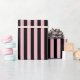 Dieses Packpapier wird in einem schwarzen und rosa Streifendruckentwurf gezeigt.