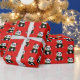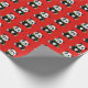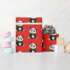 Geschenkverpackungspapier gezeigt in einer roten Hintergrundfarbe mit einem niedlichen Pandabärndruck.