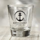 Un verre de tir minimaliste chic sur le thème nautique pour votre bateau qui présente une illustration moderne d'une ancre. Personnalisez avec le nom et l'emplacement de votre bateau.