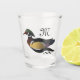 Une belle sauce duck swimming. The illustration is done from the side with a black water wave from the tail feathers.