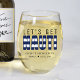 Verre à vin rayé bleu et blanc "Let's get nauti" pour une fête de bachelor / bachelorette. Personnalisez-le avec votre propre texte.