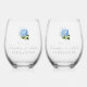 Un cadeau amusant pour les jeunes mariés le grand jour ou à l'avance à une nuptiale ou à la douche d'un couple, ces verres à vin sans tige présentent une fleur d'hydrangée bleue poussiéreuse, la date mariage et le texte du nom.