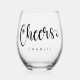 Lunettes de vin sans cachet avec le texte en couleur noir ou personnalisé "Cheers" dans une police de script mignonne et votre nom personnalisé ci-dessous.