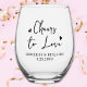Présentez notre élégant verre de vin, l'ajout parfait à toute célébration mariage! Orné de la phrase "Cheers to Love" dans un texte et des coeurs manuscrits étonnant, ce verre est une façon moderne et élégante de trinquer aux jeunes mariés. Personnalisez-le avec les noms de la mariée et du marié et la date du mariage pour créer un souvenir intemporel. Idéal pour les faveurs de mariage ou de fête, ce verre de vin est un must pour toute célébration d'anniversaire mariage ou de couple. Le design élégant et la touche personnalisée en font un cadeau magnifique et réfléchi pour les couples. Venez profiter de votre occasion spéciale avec notre verre de vin charmant et sophistiqué.