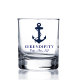 Un verre de whisky classique sur le thème nautique pour votre bateau qui présente une illustration bleu marine traditionnelle d'une ancre et d'une corde que vous pouvez garder ou remplacer par le logo de votre bateau. Personnalisez avec le nom et l'emplacement de votre bateau dans élégant script bleu marine et typographie.