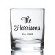 Chic monogramme verre de whisky avec votre nom de famille dans un script de signature élégant et votre date ou année mariage établie dans la simple typographie.