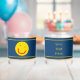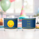 Un soleil jaune aux yeux verts souriant sur un arrière - plan bleu. Customisez en ajoutant votre propre texte à l'envers. Vous pouvez modifier la couleur du texte et de l'arrière - plan.