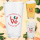Le DRAPEAU AMOUR mexicain sur un verre à boire. Le mot LOVE est présenté en lettres rouges avec un drapeau en forme de coeur du Mexique pour l'O. Parfait pour un cadeau de Saint Valentin pour lui. Peut être customisé pour toute occasion pour votre Mexicain.