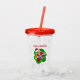 Cette rondelle acrylique avec paille et couvercle a un squelette amusant qui regarde d'une forme rouge et verte brillante dimensionnelle portant un chapeau de Père Noël tenant des ornements de Noël à ses yeux. Customisez le texte Joyeux Noël avec le modèle à l'avant et à l'arrière.