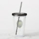 Vêtements acryliques modernes avec couvercle et paille à boire pour le lycée ou l'université diplômé avec les couleurs de l'école noir et vert citron, avec des caractères gras imprimés en vert citron sur un cercle noir avec bordure verte citron.