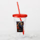 Un agitateur acrylique avec un corbeau noir. Une arche jaune derrière. Entouré de fleurs rouges et violettes. L'ambiance gothique cool.