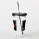 Cette rondelle acrylique avec paille et couvercle a un joli hibou brun portant un collier bleu sur un arrière - plan noir avec des petites étoiles blanches dans une bordure blanche fantaisie à l'avant et à l'arrière.