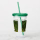 Un agitateur acrylique avec une photo montrant un mignon petit renard à fourrure rouge et blanche. Entouré de feuilles et d'herbes verdoyants.