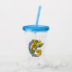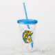 Cette boisson acrylique tumeur à la paille et au couvercle a un lézard souriant aux couleurs vives tenant une feuille sur une brindille aux couleurs vert, jaune, bleu et orange.