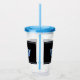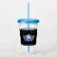 Ce tumeur acrylique a une image de couronne bleue sur le noir sur l'arrière - plan clair. Bandes d'accentuation en haut et en bas. Couvercle bleu et paille. Customisez cet objet ou achetez comme indiqué.