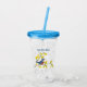 Cette rondelle acrylique avec paille et couvercle a un mignon petit oiseau rouge et bleu tweetant assis sur une branche avec des fleurs jaune vif. Customisez votre texte avec le modèle à l'avant et à l'arrière.