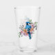 Un oiseau de geai bleu entouré de fleurs printanières rose, violet et pêche de couleur pastel sur fond bleu clair.