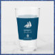 Elégant design bleu foncé et blanc avec un thème nautique. Personnalisez votre nom dans le modèle. Décoré d'un voilier glissant par, et d'une icône de navigation.