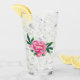 Ce verre clair a une fleur de pivoine avec des feuilles en rose et vert à l'avant et à l'arrière. Customisez cet objet ou achetez comme indiqué.