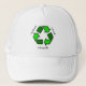 Verringern Sie - Wiederverwendung - recyceln - schwarze Beschriftung mit Zweiton grünem recycelndem Symbol auf Kappen in sortierten Farben.
