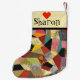 Der bunte Entwurf der verrückten Steppdecke auf diesem WeihnachtsStrumpf hat ein Patchwork des Gewebes verziert mit verschiedenen Farben und Mustern einschließlich Polkapunkte, Wirbel, Streifen, Leinwandbeschaffenheit und mehr. Farben umfassen Rosa, Braun, Türkis, Gelb, Grau, Schwarzes, Orange, Olivgrün und Rot. Das Spitzenband ist mit einem roten Herzen und einem mit Monogramm Namen cremefarben, damit Sie auf beiden Seiten vom Strumpf personifizieren. Macht ein großes Feriengeschenk! Entworfen durch Künstler © Tim Coffey.