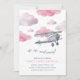 Nos invitations vintages d'anniversaires de enfants d'avion comportent un biplan d'aquarelle volant à travers des nuages roses moelleux. Personnalisez avec les détails de votre fête d'anniversaire sous. Cartes inversées à solide rose pâle. Un choix parfait pour les futurs pilotes et aviateurs en herbe !