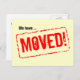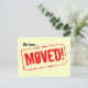 Verschieben von Postkarten mit roter Gummi Briefmarke Design Maßgeschneiderter Bewegungstext; Wir sind umgezogen! Fügen Sie Ihre neue Adresse auf der Rückseite ein. Umzugskarten für Zuhause und Business.
