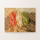 Ein Puzzle mit dem fotografischen Bild verschiedener Arten von Nudeln, die den Rahmen füllen. Komplett mit der italienischen Flagge von Rot, Gelb und Grün. Dieses Rätsel ist vollständig anpassbar. Sie können eine Nachricht oder einen beliebigen Text hinzufügen, oder Sie können die Größe und Anzahl der Puzzleteile ändern, um die gewünschte Schwierigkeitsstufe zu Set.
