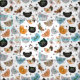 Cartoon wie Grafik, Gesichter verschiedener Katzen, nahtlose Wiederholmuster
