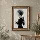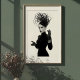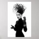 Mit diesem faszinierenden Schwarz-Weiß-Kunstdruck, einem wahren Meisterwerk avantgardistischer Mode und künstlerischen Ausdrucks, macht er eine beeindruckende Aussage. Dieses überzeugende Portrait zeigt eine Frau von rätselhafter Anziehungskraft, gekrönt von einem außergewöhnlichen, skulpturalen schwarzen Hut, der einem skurrilen Gewirr künstlerischer Elemente ähnelt, ergänzt durch einen zarten, verführerischen Schleier. In einem schwarzen Rollkragen und langen, eleganten Lederhandschuhen gekleidet, bietet ihr minimalistisches Kleid eine raffinierte Leinwand für das dramatische Headwear und schimmernde Armzubehör. Ihre blasse Haut, ihre kühlen, dunklen Lippen und ihr durchdringender Blick bilden einen faszinierenden Kontrast zu ihrem dunklen Ensemble und dem unberührten, weißen Hintergrund und unterstreichen ihre kraftvolle Präsenz. Mit ausdrucksvollen Händen verkörpert dieses Kunstwerk einen selbstbewussten und geheimnisvollen Charme. Ideal für moderne Wohnräume, Modestudios oder jede Dekoration, die eine Touch von einzigartiger Eleganz, kühner Kunst und einer wirklich unvergesslichen visuellen Erzählung sucht.