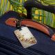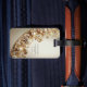 Schöner, verschlungener goldener Gepäckanhänger mit Perlen und Blumen